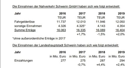 Die Einnahmen der Nahverkehr Schwerin GmbH haben sich wie folgt entwickelt: