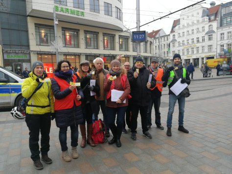 Die Aktion diente dazu, mit den Menschen über einen entgeltfreien Nahverkehr in Schwerin ins Gespräch zu kommen.