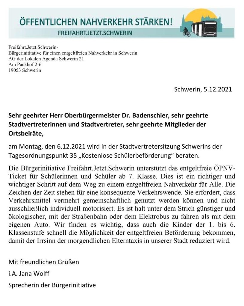 Überaus begeistert können wir hier nun verkünden, dass ein erstes Etappenziel hin zu einem entgeltfreien Nahverkehr für alle Bürger*innen in Schwerin geschafft wurde.