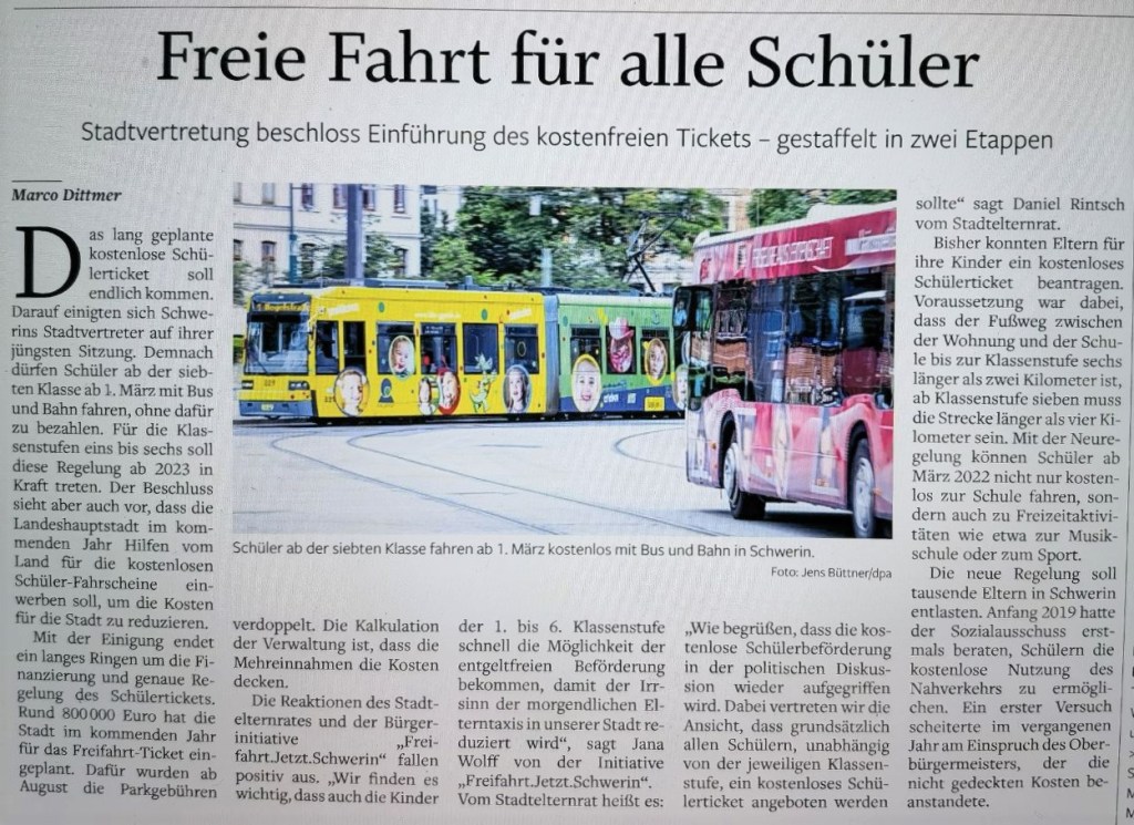 #Finanzierungkostenlosernahverkehr#entgeltfreiernahverkehr#verkehrswende#Freifahrtjetztschwerin#publictransport#neuneuroticket#Parkgebühren#monatsticket#schwerin#schwerinnahverkehr